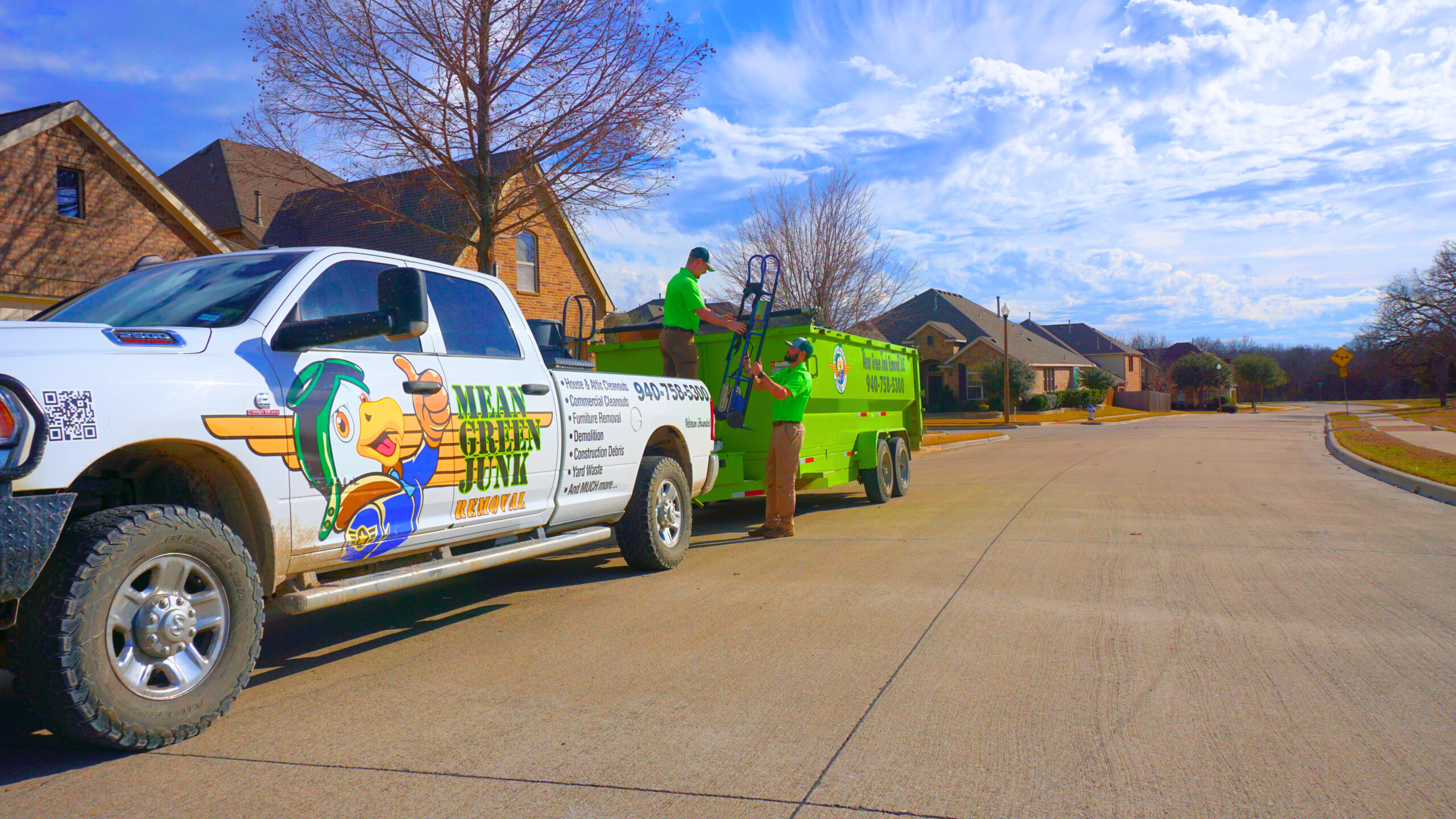 Mean Green Junk Removal loads, hauls, and disposes of all debris—making it easy to transform your space with zero hassle.